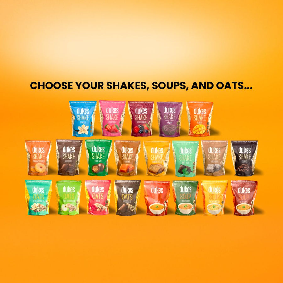 Don’t worry each Dukes® meal replacement has all the necessary protein, fibre, vitamins & minerals to make sure you stay full, healthy, and satisfied. Choose from starter packs that let you try every flavour or discounted bundles with huge savings, the choice is yours.